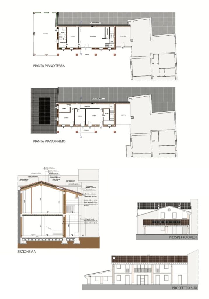Gli annessi rustici esistenti vengono riorganizzati in una nuova unità residenziale. Nella porzione principale al piano terra vengono collocati  gli spazi della zona giorno, al piano primo gli spazi della zona notte. La porzione secondaria al piano terra è adibita a garage.