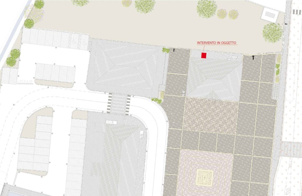 Proprio per tale ragione si è deciso di progettare un involucro metallico, richiamando i tanti elementi di arredo urbano che caratterizzano l’area verde che fa da contorno all’intero insediamento in proprietà del Comune. Una sapiente illuminazione darà visibilità importante anche nelle ore notturne.